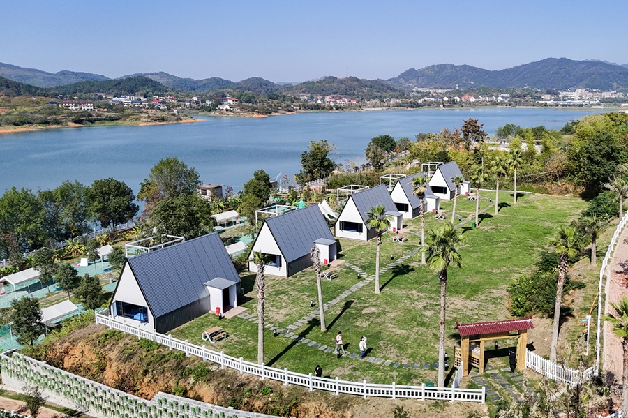 11月30日,双峰县杏子铺镇,游客在湖南水府庙国家湿地公园民宿基地休闲游玩。近年来,当地通过生态修复与乡村建设,成功培育精品民宿等新业态,有效盘活生态资源,拓宽群众增收渠道,为乡村振兴注入绿色动能。吴永华 摄