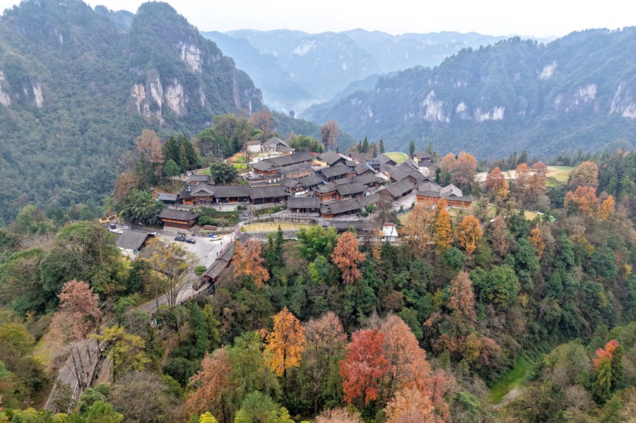 12月4日,初冬时节,花垣县双龙镇十八洞村被五彩斑斓的山野环抱,宛如一幅油画,美不胜收。彭彪 摄