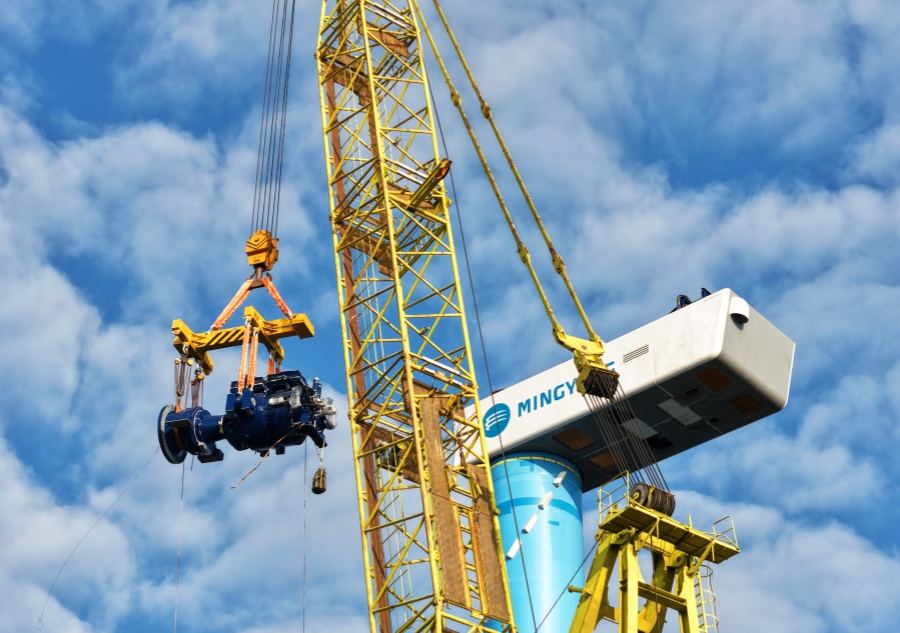 1月24日,衡山县长江镇,长江风电场项目施工人员在吊装风机部件。近年来,该县致力于发展绿色能源,引进明阳集团投资1.6亿元,建设总装机容量25兆瓦的长江风电场,助力当地经济发展。曹正平 刘涛 摄影报道(湖南图片库)