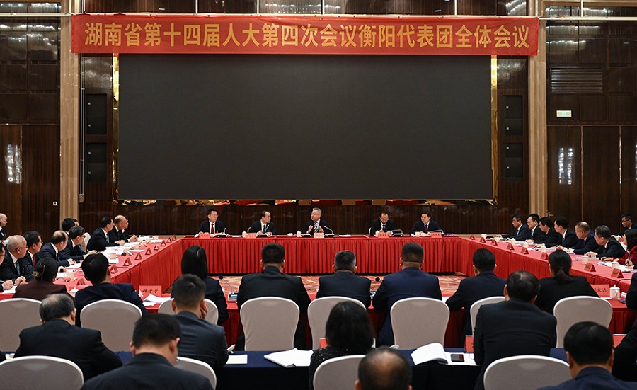 2月4日,省人大代表、省委书记、省人大常委会主任沈晓明来到省十四届人大四次会议衡阳市代表团,与代表们一起审查计划草案及报告、预算草案及报告。他强调,要深入学习贯彻党的二十届四中全会精神以及习近平总书记关于湖南工作的重要讲话和指示批示精神,树立和践行正确的政绩观,锚定发展目标,勇于改革创新,为奋力谱写中国式现代化湖南篇章作出更大的贡献。
