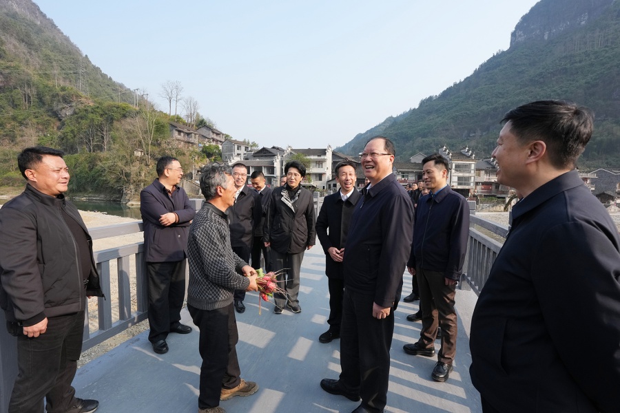 来到吉首市矮寨镇坪朗村,毛伟明一行对中央巡视组移交信访件中反映的河道汛期涨水导致群众出行不便问题进行现场督办。目前,连通G209公路的坪朗便民桥已建设完成,村民的过河时间从汛期的30分钟缩至3分钟。毛伟明指出,要用心用情办好群众“身边小事”,解决好群众急难愁盼,全面摸排、系统整改同类问题,加快补齐乡村基础设施短板,持续提升群众获得感、幸福感、安全感。