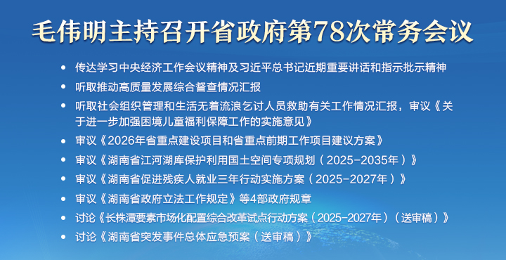 毛伟明主持省政府第76次常务会议 部署湖南自贸试验区建设、国有金融资本管理等