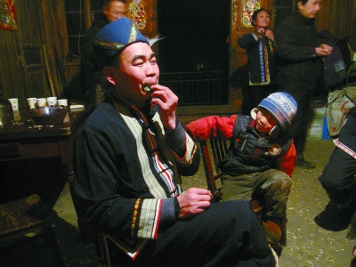 饭后大家围坐在火炉旁,开始对山歌,吹木叶,还会邀请当地的民间艺人扮演土地公公“降土地”,预祝来年风调雨顺。那场景热闹非凡,年味甚浓。