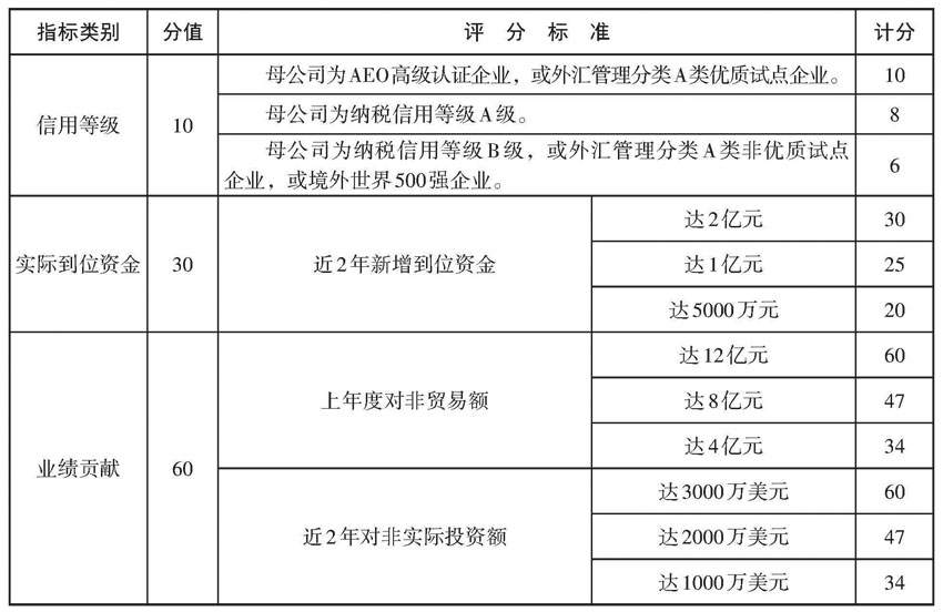 2.贡献。近2年新增实际到位资金达5000万元,且符合以下任一项条件:上年度对非贸易额达3亿元、近2年对非实际投资额达1000万美元。