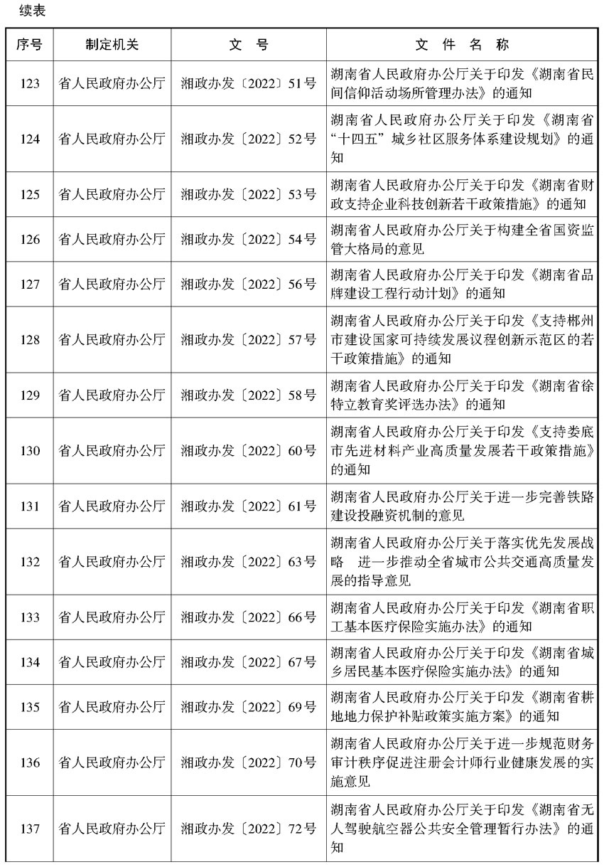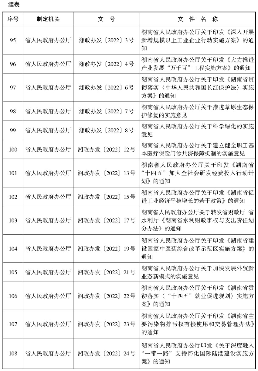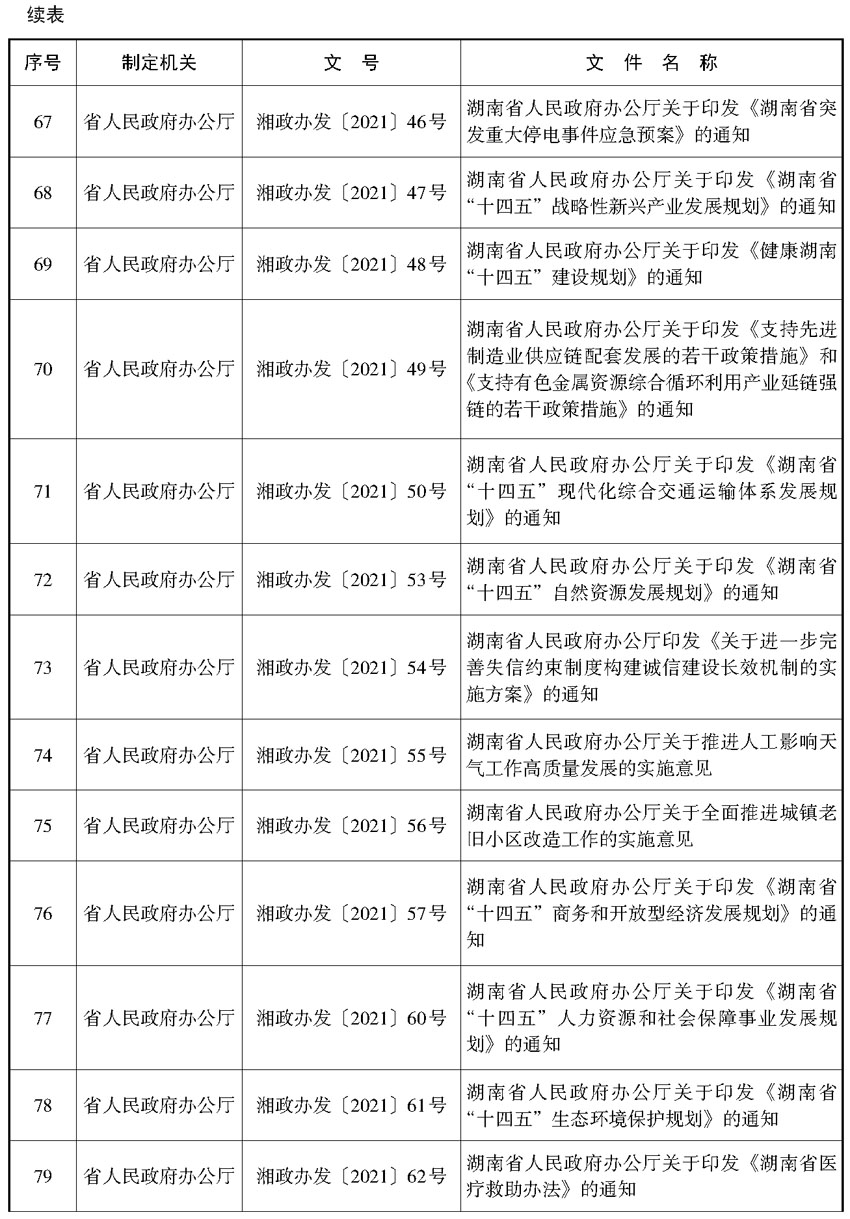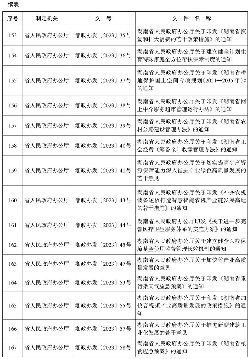 为加快建设法治政府,维护省政府行政规范性文件的权威性和严肃性,根据《湖南省行政程序规定》和《湖南省规范性文件管理办法》等规定,省政府对2025年2月28日前以省政府和省政府办公厅名义制发的现行有效的规范性文件进行了全面清理。现决定将清理结果公布如下: