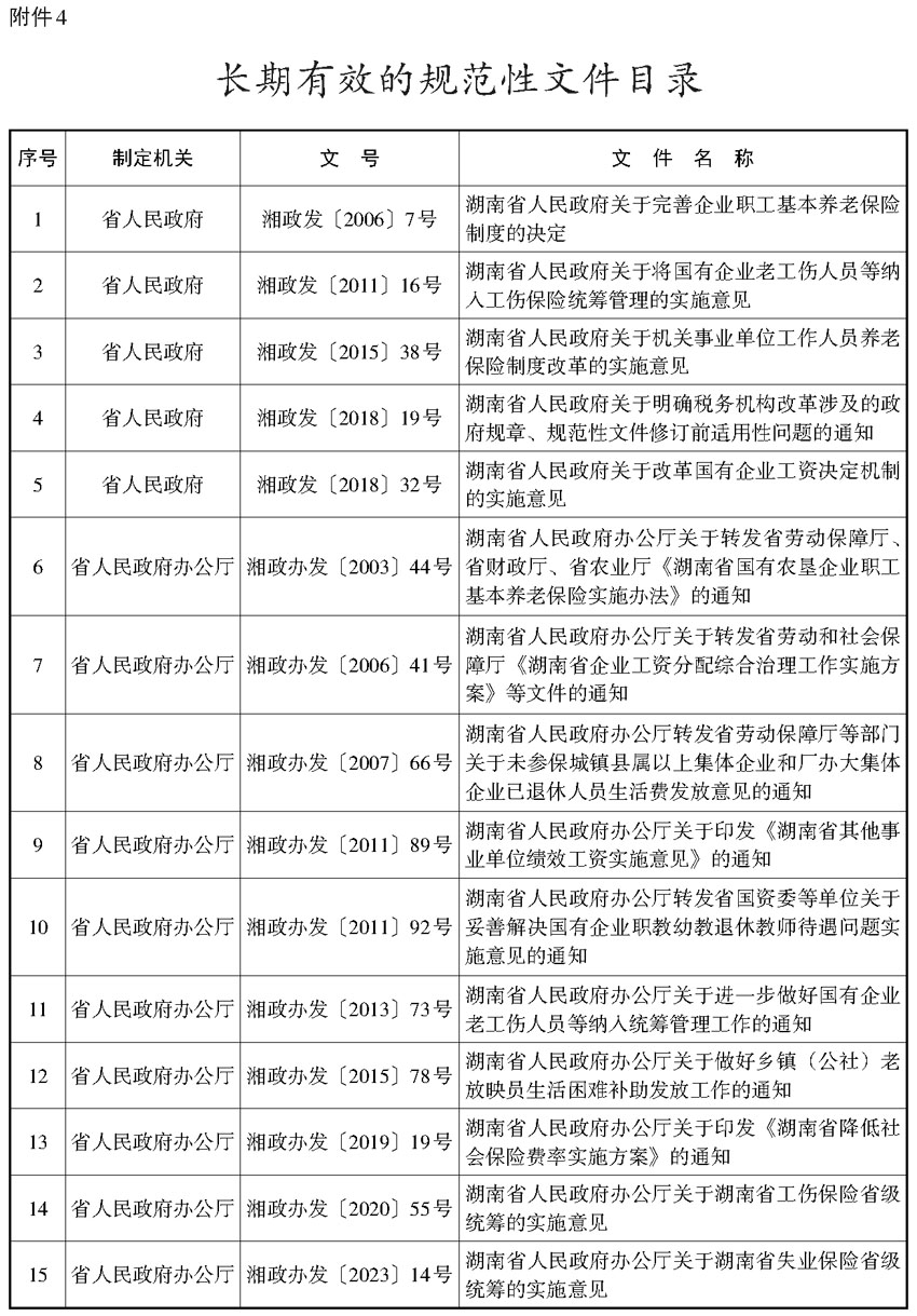 四、《湖南省人民政府关于完善企业职工基本养老保险制度的决定》(湘政发〔2006〕7号)等15件规范性文件长期有效。