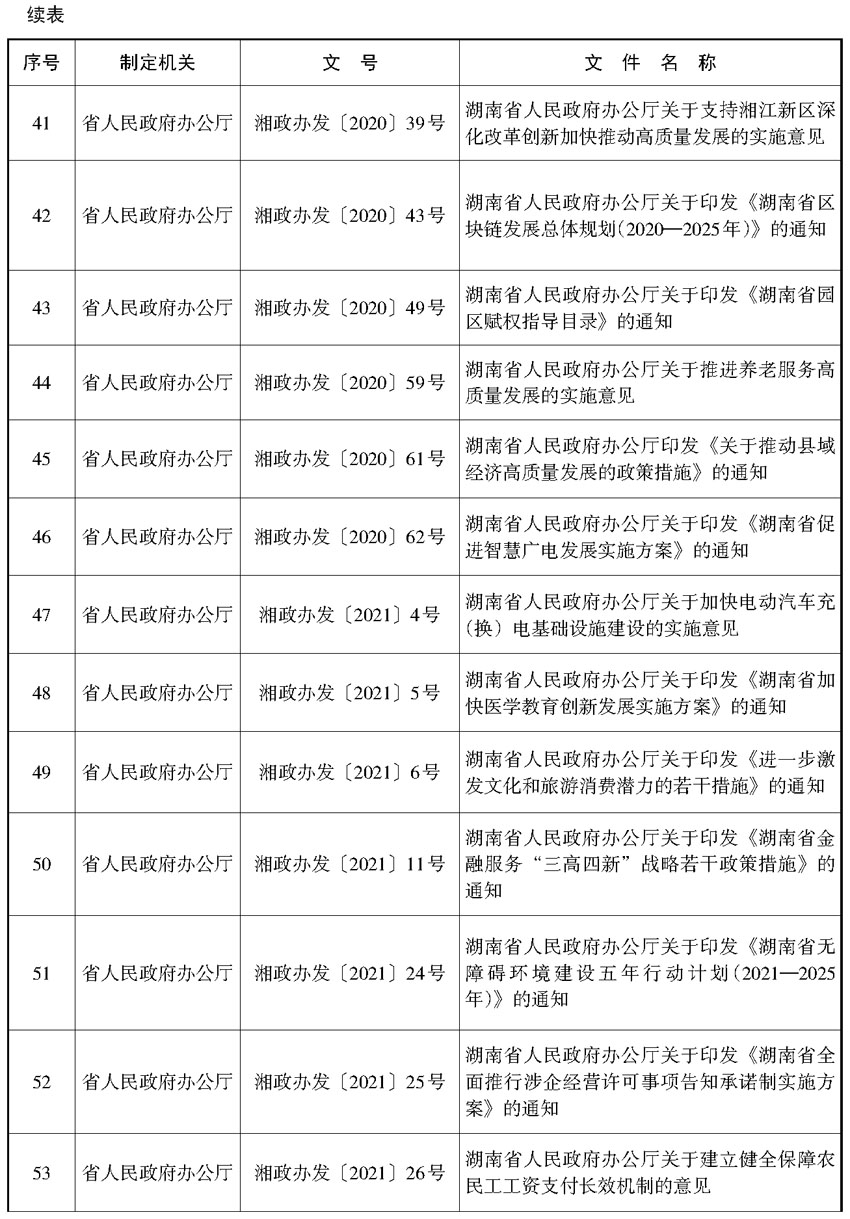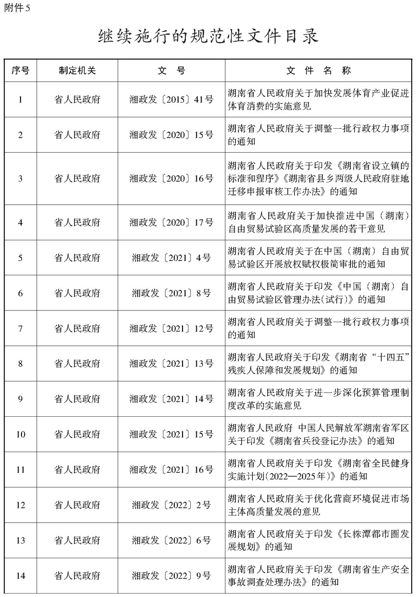 五、《湖南省人民政府关于加快发展体育产业促进体育消费的实施意见》(湘政发〔2015〕41号)等193件规范性文件继续施行。