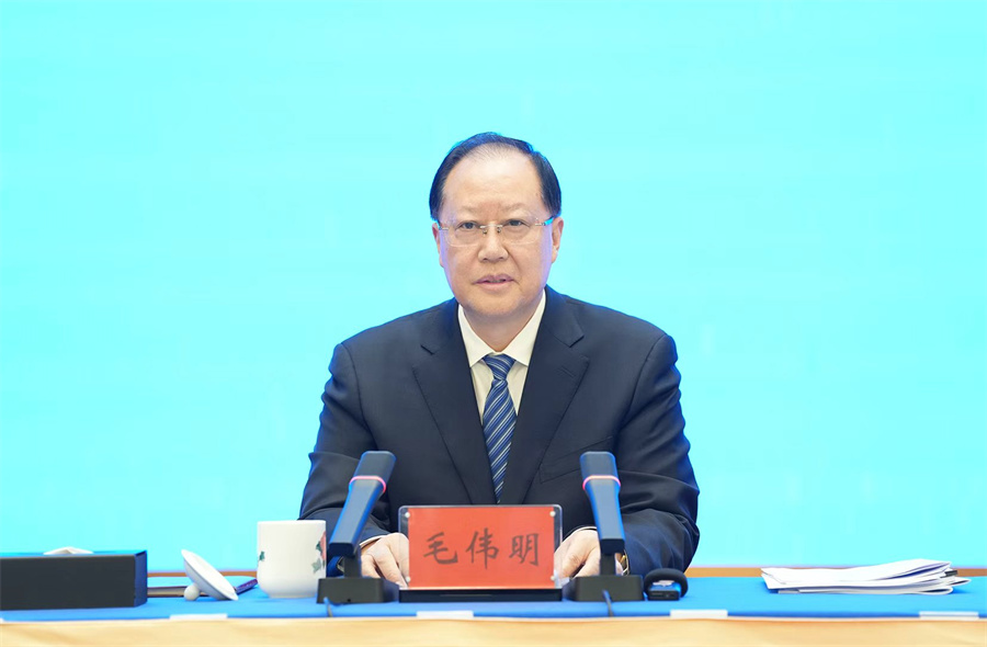 毛伟明指出,刚刚闭幕的省两会,是一次绘就新蓝图、迈进新征程、谱写新篇章的盛会。大会期间,与会代表委员积极建言献策、广泛凝聚共识,形成了加快实现“三高四新”美好蓝图、奋力开创“十五五”发展新局面、全面落实《政府工作报告》部署、以“开局八好”实现良好开局的共识共为。全省政府系统要贯彻好省两会精神,全力抓好政府工作,奋力谱写中国式现代化湖南篇章。