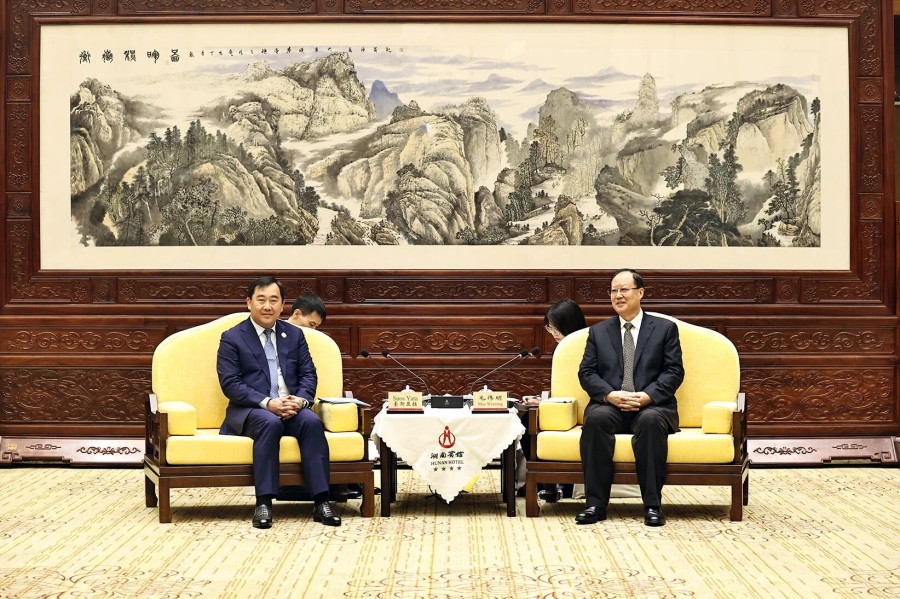 毛伟明对客人来湘访问表示欢迎,并简要介绍湖南经济社会发展情况。他说。近年来,在习近平总书记和柬埔寨领导人的战略引领下,湖南与柬埔寨经贸合作势头强劲、农业合作成果丰硕、文教卫合作成效显著,去年,双方进出口总额达23.7亿元、同比增长50.1%,柬埔寨(长沙)商务中心正式落地,来自柬埔寨的大米、水果等在湖南广受欢迎,湖南的工程机械、箱包鞋靴等在柬埔寨随处可见。当前,湖南正深入贯彻党的二十届四中全会精神,锚定“三高四新”美好蓝图,奋力谱写中国式现代化湖南篇章。我们将积极参与中柬“工业发展走廊”和“鱼米走廊”建设,加强双方在工程机械、基础设施、现代农业、医疗卫生、人文旅游等方面的务实合作,为构建新时代全天候中柬命运共同体贡献更多力量。
