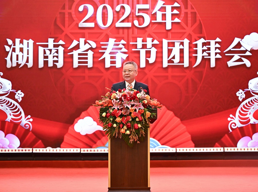 沈晓明在致辞中说,刚刚过去的2024年是湖南发展进程中具有特殊意义的一年。习近平总书记亲临湖南考察并在长沙主持召开新时代推动中部地区崛起座谈会,为湖南各项事业发展指明了前进方向、注入了强大动力。全省上下牢记嘱托、感恩奋进,用实干和汗水书写时代答卷,中国式现代化在三湘大地展现出蓬勃生机。一年来,湖南坚持不懈用习近平新时代中国特色社会主义思想凝心铸魂,深入学习贯彻党的二十届三中全会及习近平总书记关于湖南工作的重要讲话和指示批示精神,深刻领悟“两个确立”的决定性意义,做到“两个维护”;坚持高质量发展的根本导向不动摇,积极抢抓中央一揽子政策机遇,科学应对严峻复杂的国内外形势和历史罕见的自然灾害,实现了经济回升向好和社会大局稳定;全面贯彻党的二十届三中全会精神,系统部署推进300多项改革举措,推出首批重点改革事项,解决了一些长期想解决而没有解决的难题,办成了一些过去想办而没有条件办的大事;坚持以人民为中心的发展思想,用心用情办好民生实事,扎实推进灾后恢复重建,群众获得感幸福感安全感不断增强;坚持全面从严治党,进一步加大正风肃纪反腐力度,持续整治形式主义为基层减负,着力优化干事创业环境,形成了心齐气顺劲足的良好局面。