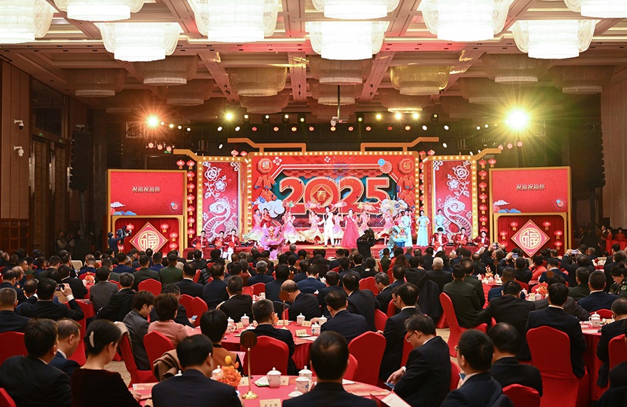 1月23日,2025年湖南省春节团拜会在长沙举行。省委书记沈晓明致辞,代表省委、省人大常委会、省政府、省政协、省军区向全省各族群众致以节日美好祝福。省委副书记、省长毛伟明主持。
