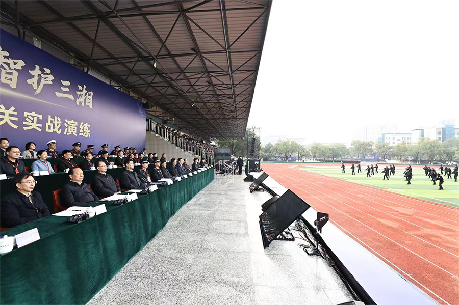 演练场上,一大批高精尖的警用武器装备悉数亮相,千余名能战善战的公安精锐反应迅速、配合默契,全面展现了湖南公安“智慧科技+实战能力”的硬核实力。毛伟明认真观看实战演练,为大家的昂扬斗志、过硬本领“点赞”。他指出,举行实战演练,是对我省公安实战能力的全面检验,是推进公安铁军建设的重要抓手。大家要以此为新起点,不断锤炼实战本领,始终坚持底线思维、极限思维,聚焦各类实战场景锤炼过硬本领,确保一旦发生重大突发事件,能够快速反应、高效联动、妥善处置。持续提升新质战斗力,充分发挥“专业+机制+大数据”新型警务运行模式的实战效能,提升精确预警、精细管控、精准打防能力。强化作风能力建设,严明警纪、纯洁队伍,着力锻造一支忠诚干净担当的新时代公安铁军。