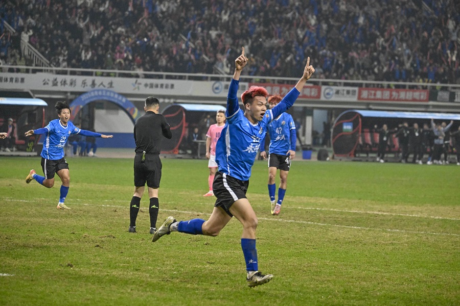 永州队庆祝进球。
