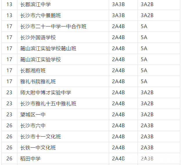 第三批录取学校:长沙大学附属中学、雅礼书院中学、师大附中博才实验中学(湘江校区)、麓山外国语实验中学、岳麓实验中学、长沙市一中广雅中学、稻田中学、周南雨花中学、明德雨花实验中学、望城区第二中学(含过渡期面向望城、内六区单列)、望城区第六中学(含过渡期面向望城、内六区单列)以及民办学校(含湖南师大第二附属中学、耀华中学、同升湖实验学校、长沙中加学校、长沙市怡雅中学、长沙市明达中学、湘一立信实验学校、师大思沁高级中学、长沙市湘郡长德实验学校、长沙市卓华高级中学、长沙市恒定高级中学、望城金海高级中学、长沙市康礼克雷格高级中学、长沙市湘军高级中学)、子弟学校(含湖南大学附属中学、国防科技大学附属中学、中南大学第一附属中学)。