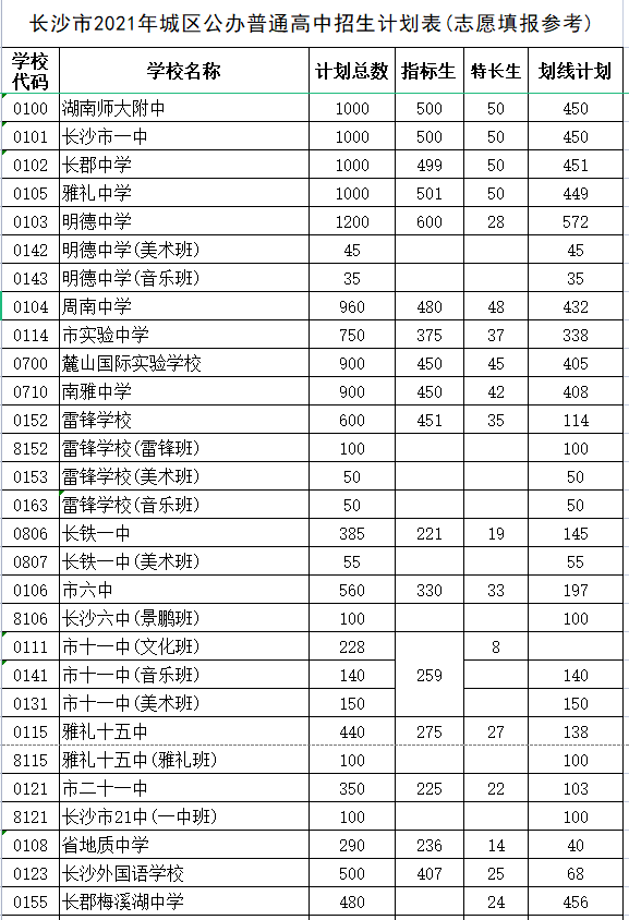 2、查看长沙市教育局下发的学校招生计划表,获取各学校的招生人数;