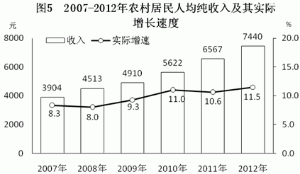 全省城镇居民人均可支配收入21319元,比上年增长13.1%;扣除价格因素,实际增长10.7%。农村居民人均纯收入7440元,增长13.3%;扣除价格因素,实际增长11.5%。