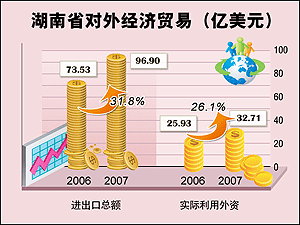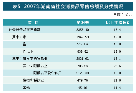 2007年,在省委、省政府的正确领导下,全省各级深入贯彻科学发展观,认真落实中央各项宏观调控政策,着力加强基础产业、基础设施和基础工作,大力推进新型工业化,扎实推进社会主义新农村建设,努力构建和谐湖南,全省经济发展加快,质量效益显著提高,发展活力进一步增强,民生不断改善,社会事业全面进步,谱写了富民强省的崭新篇章。