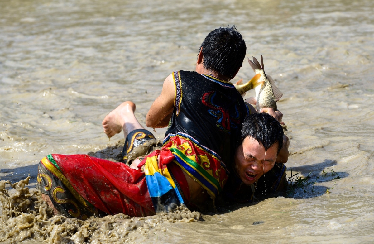 “抢鱼塘”是湖南省溆浦县溆水流域一带传统民俗活动。每年不定期的举行这种活动,举办方在水田来放很多鱼,锣鼓声一响,大家都可以去“抢”,谁抢到谁。