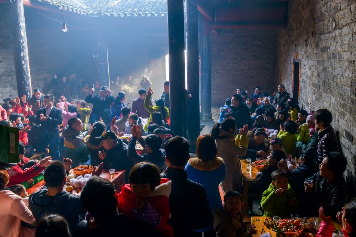 2016年2月8日8时。大年初一,衡东县荣桓镇肖家新屋全村人聚在肖家老祠堂一起过大年。