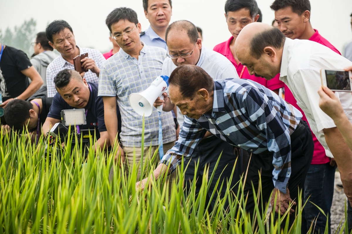 中国工程院院士、美国科学院外籍院士、国家杂交水稻工程技术研究工作中心主任、我国杂交水稻学科奠基人袁隆平在澧县县委书记邹如龙等陪同下,视察了在澧县城头山镇试种的千亩杂交稻。