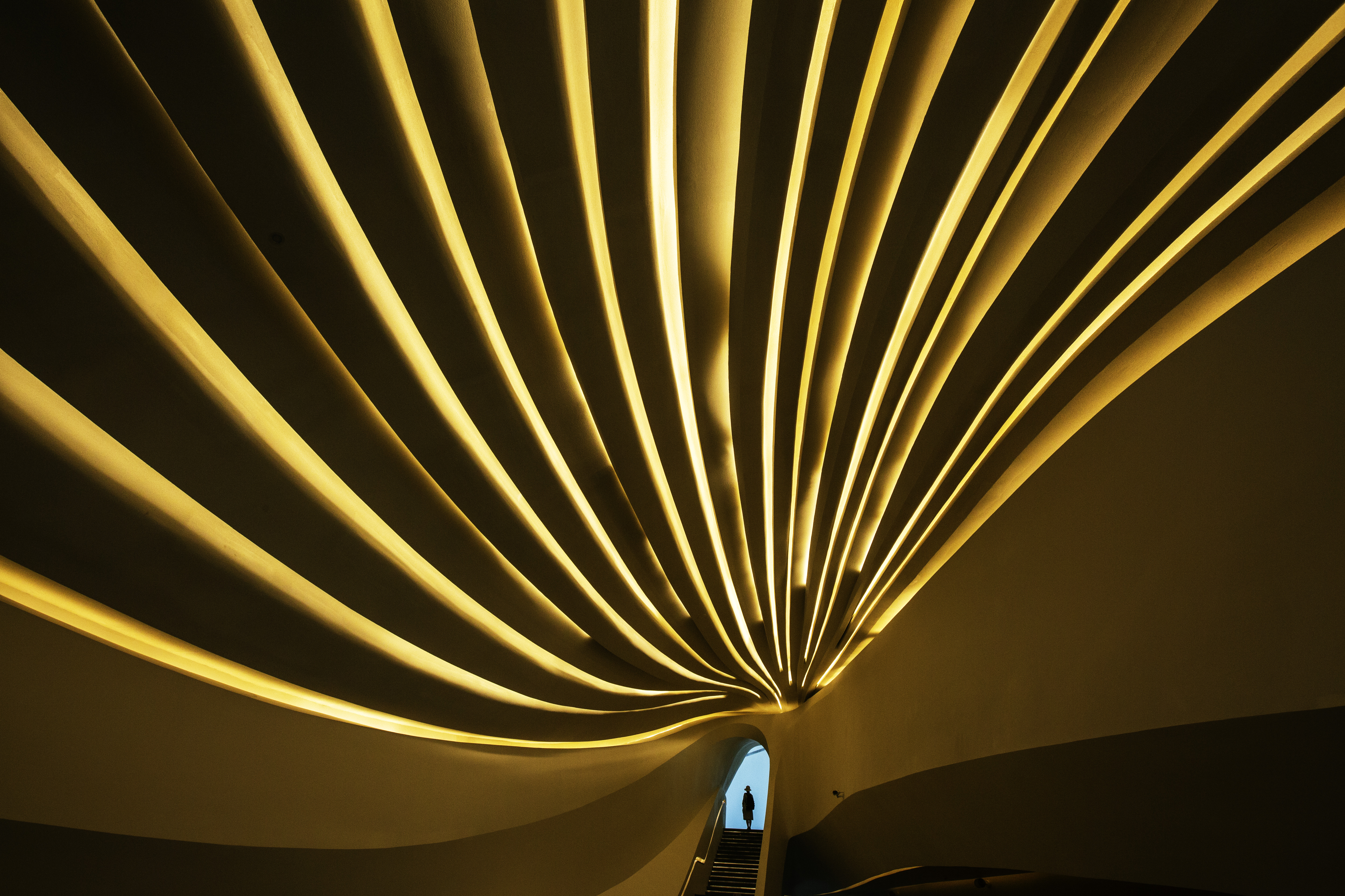 长沙市梅溪湖国际文化艺术中心大剧场,充满魅力的光影造型,动感十足,给人美的享受。