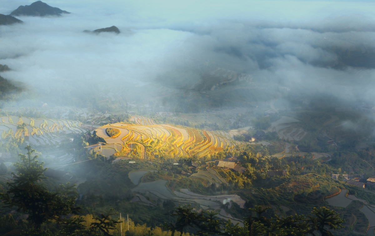 图片拍摄的是隆回县虎形山瑶族乡草原村梯田景色,多年农耕,依山造田,不觉间,天成仙境。更是春光旖旎,晨雾飘渺,让人醉心田园风光之美。