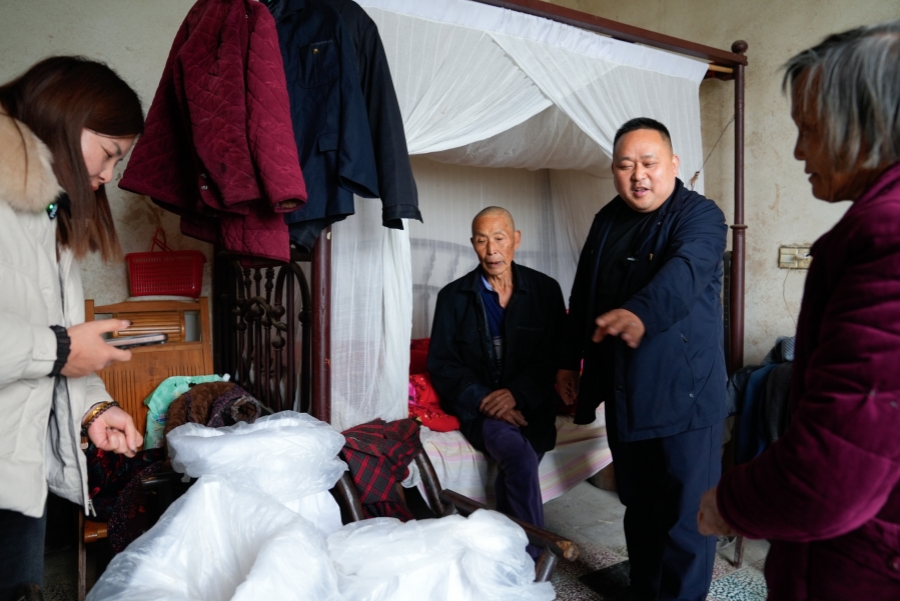 12月9日,慈利县零溪镇大庄村,村党支部书记李刚勇(右)入户走访。