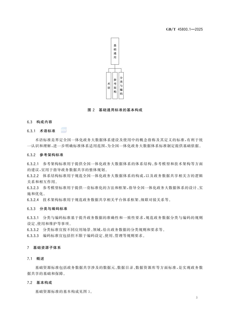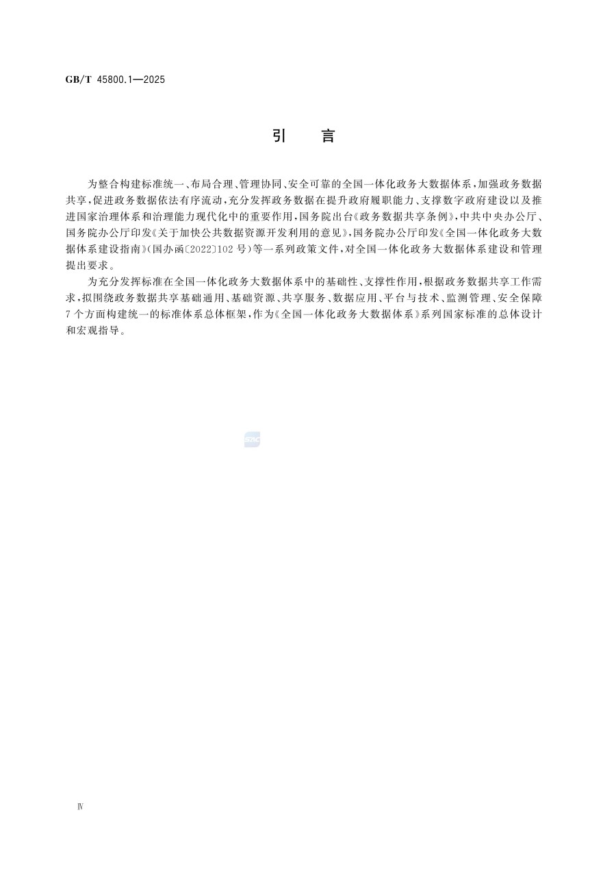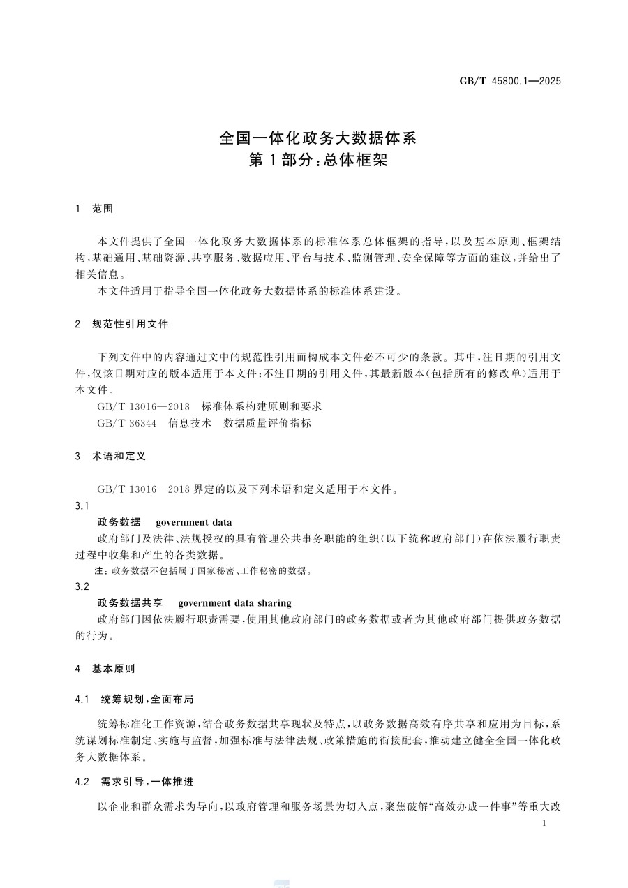 《全国一体化政务大数据体系 第1部分:总体框架》(GB/T 45800.1-2025)