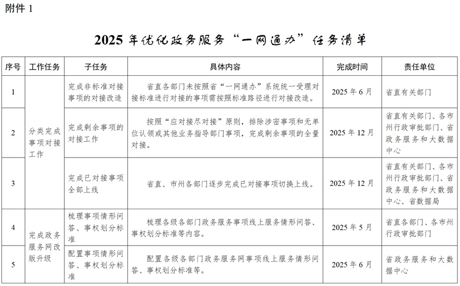 附件:1.2025年优化政务服务“一网通办”任务清单